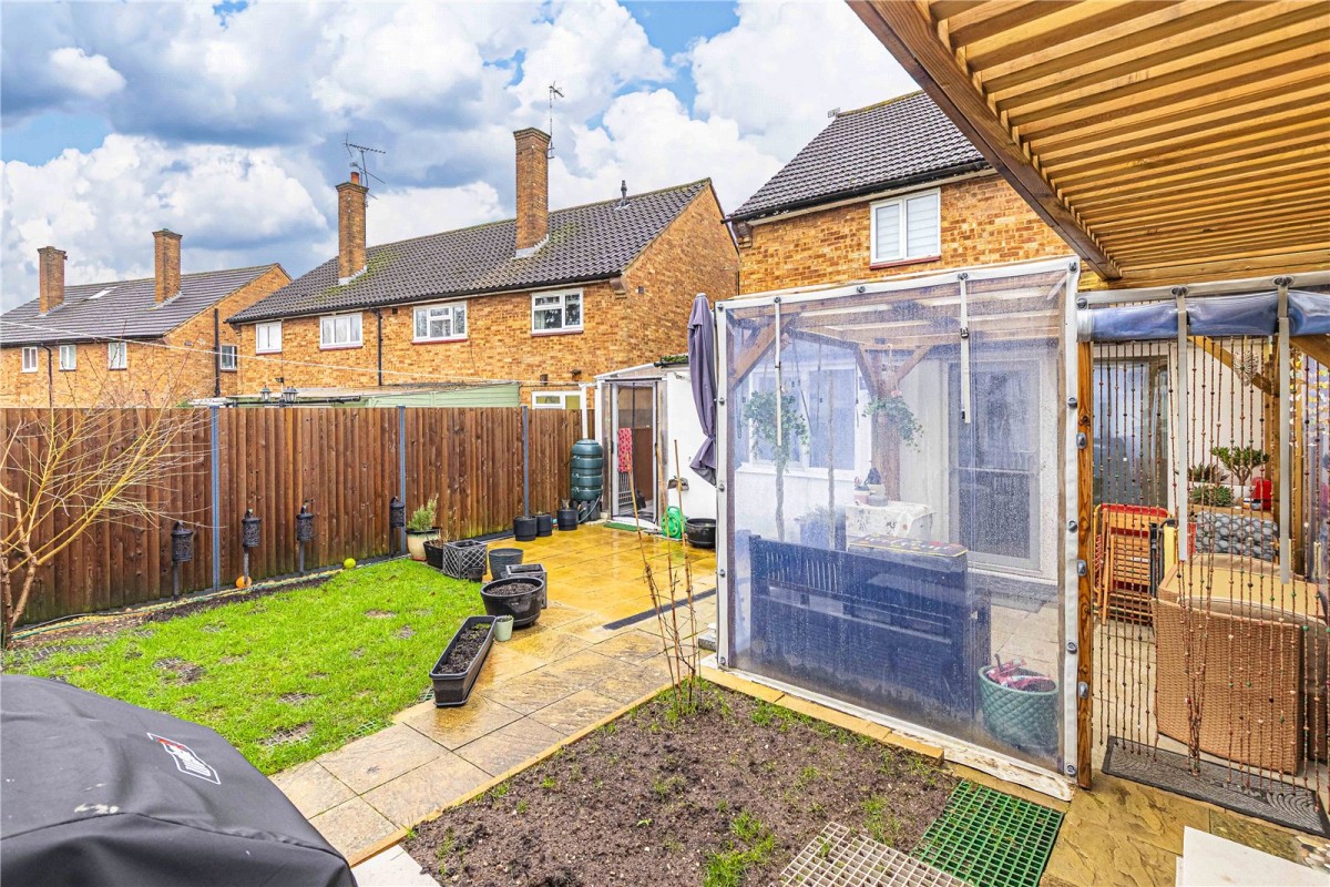 Castles are pleased to present a stylish, light-filled three-bedroom family home with flexible living spaces, modern finishes, and excellent transport links in a prime Borehamwood location. The accommodation comprises a welcoming entrance hall with a guest W.C., a bright and spacious living/dining room leading to a single-storey rear extension offering a spacious second reception room overlooking the rear garden. A real feature of this property is the stunning kitchen complete with modern white high gloss cabinets and a handy breakfast bar. The layout creates a natural flow through the home, with plenty of light and space for both relaxing and entertaining. Upstairs, you will find three well-proportioned bedrooms and a fitted family bathroom. Externally, the property benefits from a useful outbuilding currently set up to be used as a home office but could quite easily become its own self-contained annex with a modern mono-chrome shower room. A covered gazebo adjacent to the property offers a pleasant place to sit and relax whatever the weather, while to the right of the property is a covered lean-to currently used as a utility area and fantastic additional storage. Situated within close proximity to local amenities, well-regarded schools including Yavneh Collage, and excellent transport links, including a mainline station with direct access to Central London, as well as the A1 and M25 Motorways close-by. This is an outstanding opportunity to acquire a stylish and functional home in one of Borehamwood’s most desirable locations and an early appointment to view comes highly recommended.