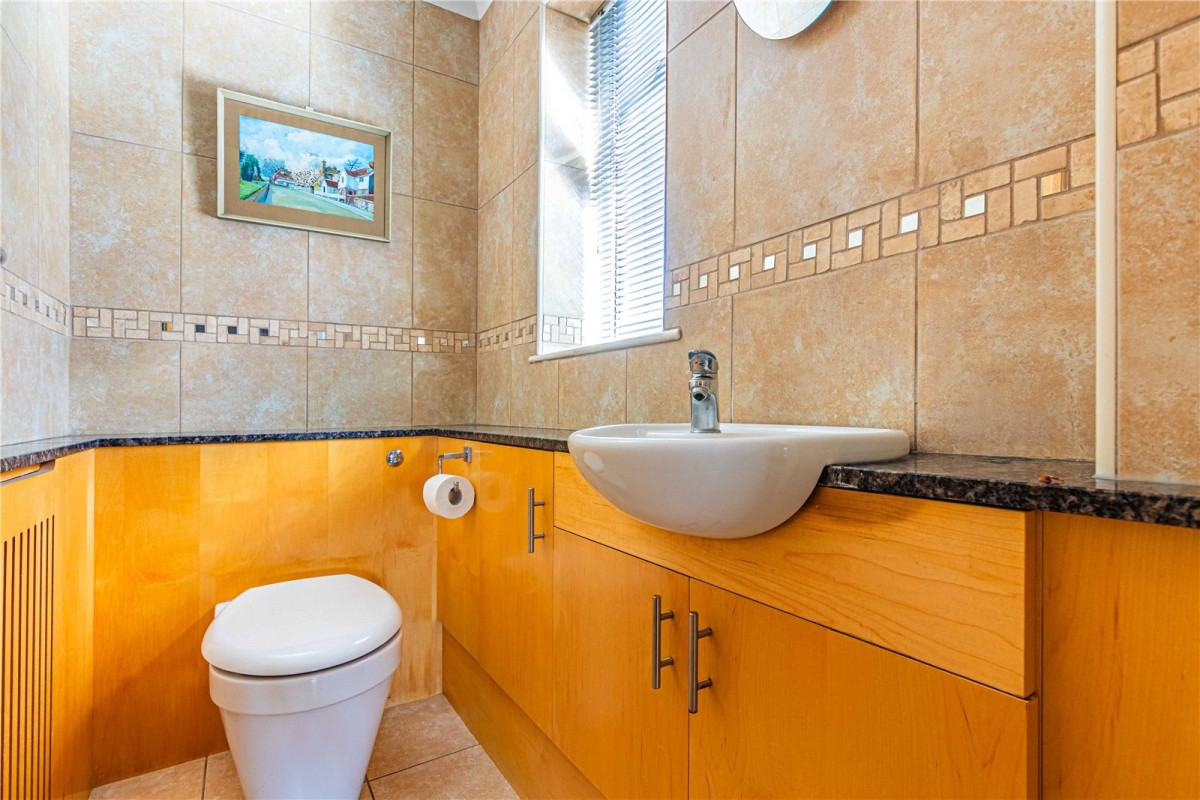 Upstairs, five generously proportioned bedrooms provide flexibility for growing families. The principal bedroom is a showpiece, offering a dual-aspect layout, extensive fitted wardrobes, and a superb ensuite shower room. A second bedroom also benefits from its own beautifully presented ensuite, while the remaining bedrooms are well-served by a sleek, modern family bathroom featuring a P shaped shower / bath, heated towel rail, and underfloor heating.