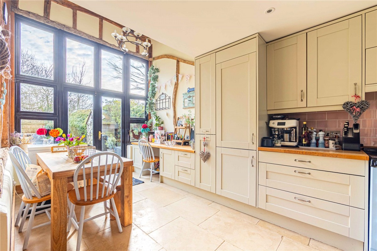 The bespoke kitchen is a true highlight, featuring an elegant Aga and cleverly designed storage solutions. Extending an impressive 23ft in length, this superb space easily accommodates a dining area and seamlessly flows onto a patio, perfect for entertaining while overlooking the picturesque garden.