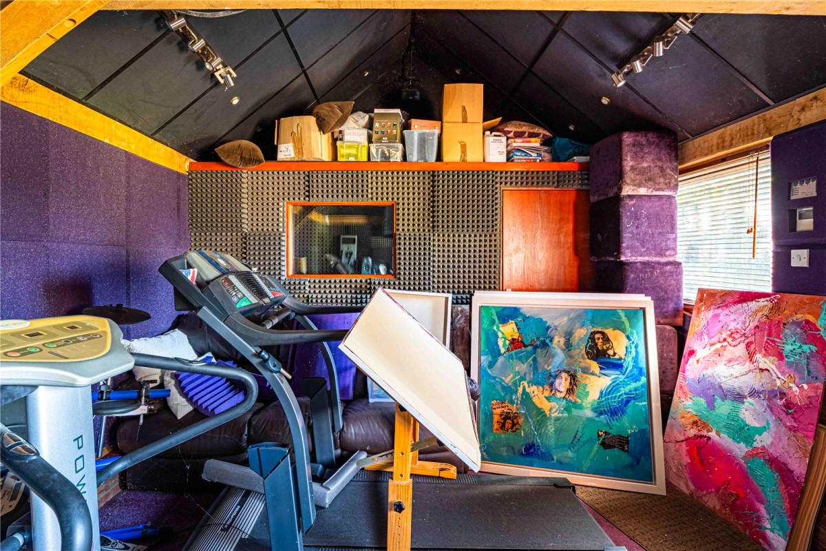 Outdoors, the grounds are truly impressive. A private swimming pool provides the perfect summer retreat, while the full-size tennis court caters to the active lifestyle. The recording studio, discreetly positioned within the grounds, offers a unique opportunity for musicians, creatives, or anyone working in media.