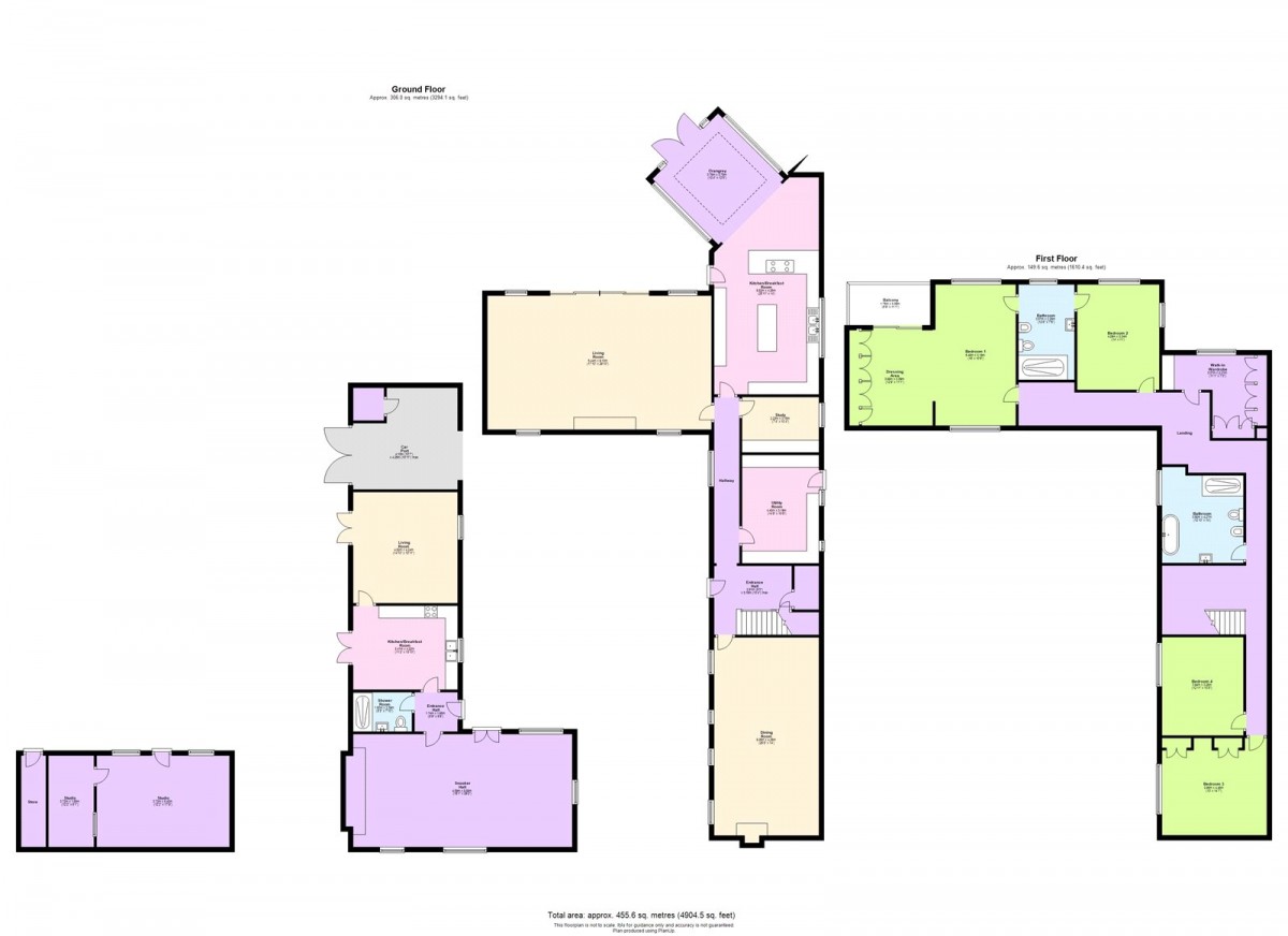 The first floor is entirely dedicated to the sleeping quarters, with all bedrooms located upstairs. The layout includes a well-proportioned master bedroom, 3 additional double bedrooms, and a mix of traditional and modern bathrooms, ensuring ample space for family and guests alike.