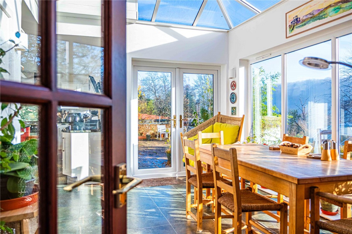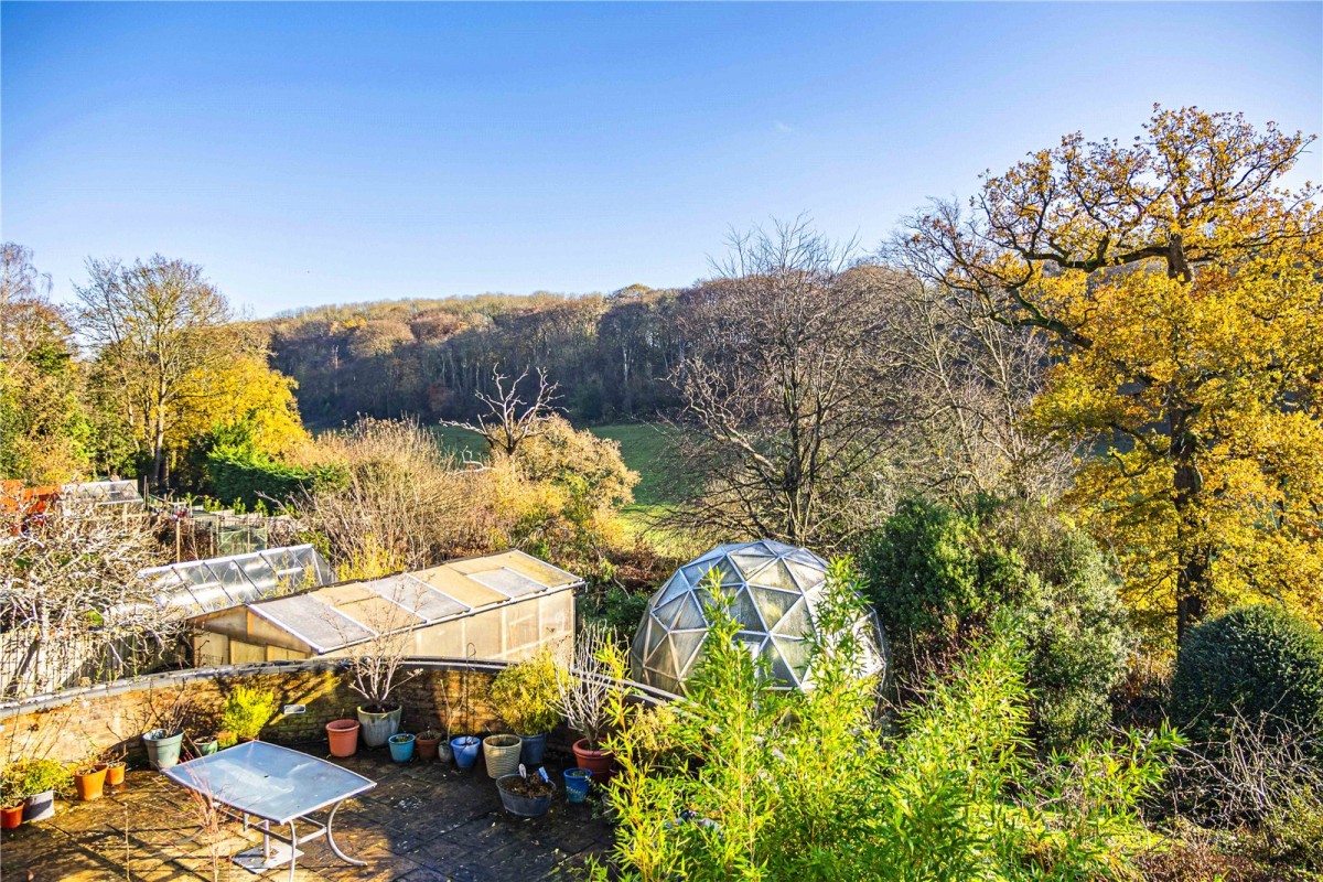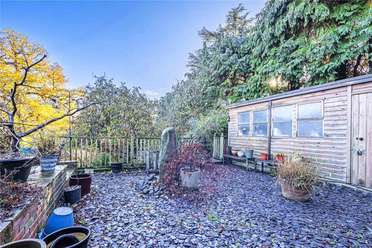 The garden is a real highlight — a thoughtfully landscaped, multi-level retreat offering exceptional privacy and charm. A large patio area provides the perfect spot for dining or entertaining, overlooking the impressive koi carp pond and colourful planting. The extensive lawn is framed by mature trees, fruit trees and established borders, creating a peaceful, picturesque setting. Garden enthusiasts will appreciate the unique hexagon-shaped feature greenhouse, an additional second greenhouse and two timber 18ft greenhouses, offering fantastic potential for work, leisure or storage.