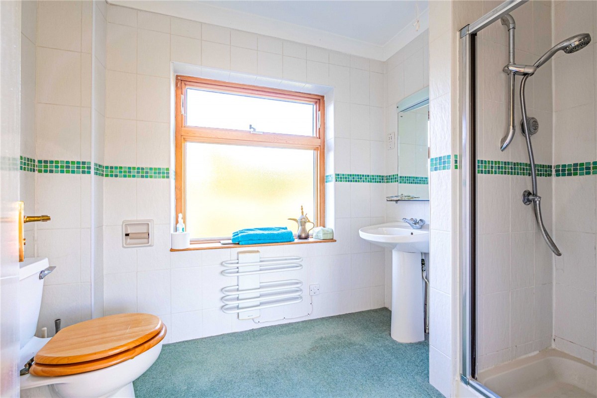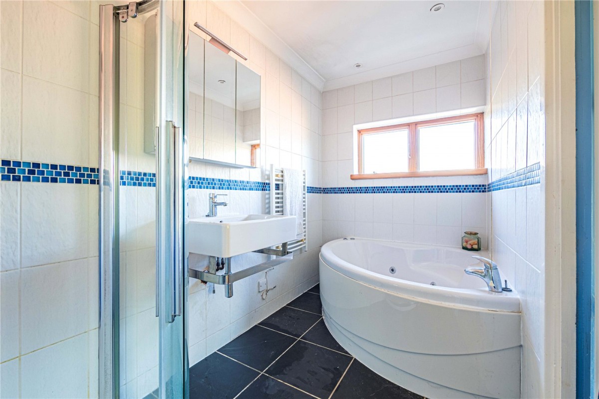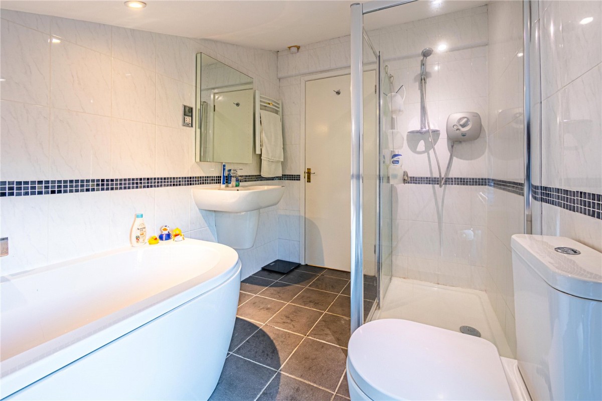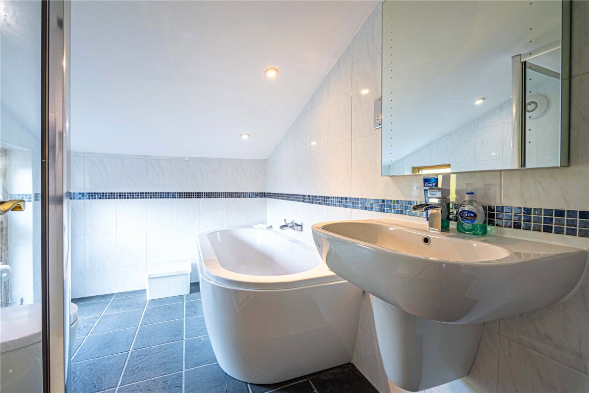 Upstairs, all four bedrooms are well proportioned and designed with comfort in mind. The principal bedroom enjoys its own en-suite and fitted wardrobes, while a further double bedroom also benefits from a modern en-suite. The family bathroom is beautifully finished, complementing the overall high specification throughout the property.