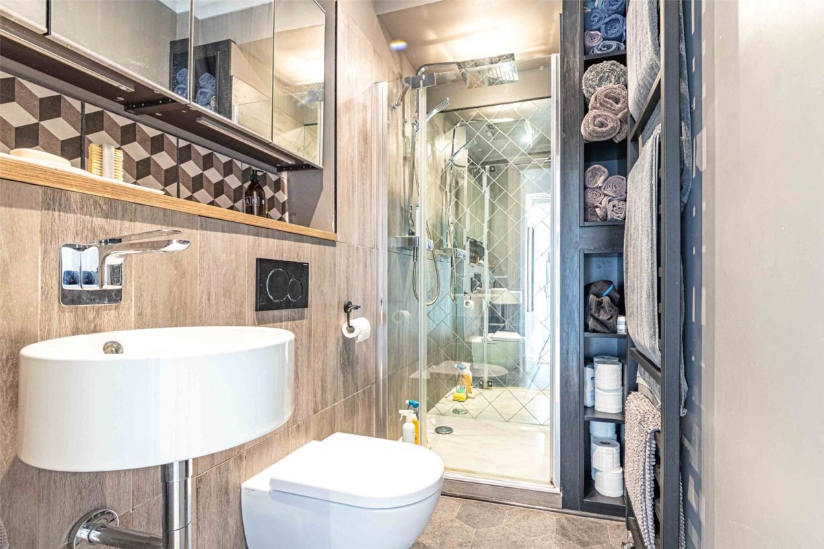 On the third floor you’ll find the main living accommodation. A bright open-plan kitchen and dining room leads directly out to a private balcony – a wonderful spot for a quiet morning coffee or an evening drink with friends. The kitchen is modern and practical, with plenty of space for cooking and entertaining. Adjoining this is a generous lounge area, ideal for both cosy nights in and social gatherings. Also on this floor is a spacious double bedroom, a contemporary shower room, and a useful storage cupboard.