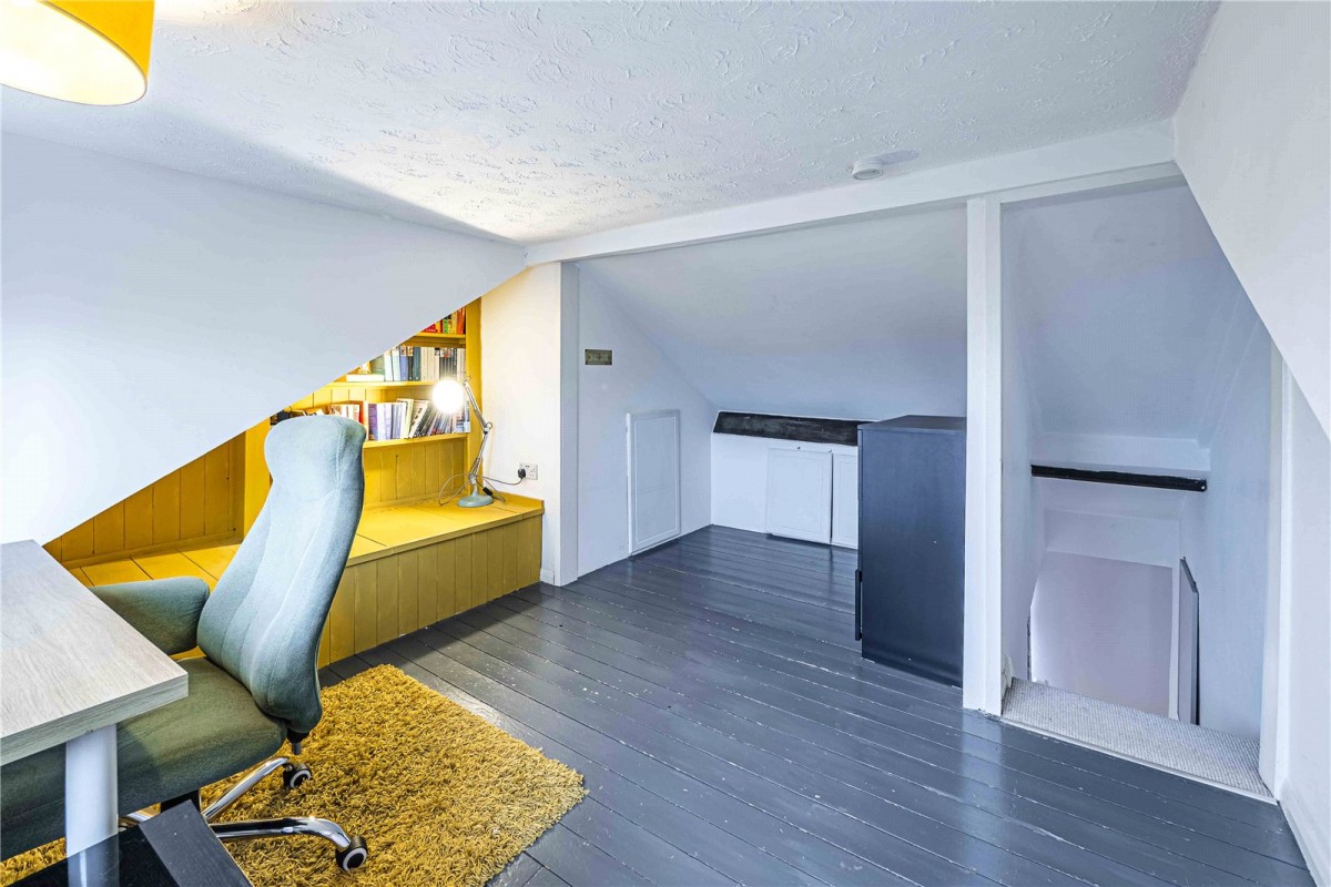 CASTLES ESTATE AGENTS are proud to present this charming character home with loft office in the heart of Berkhamsted, OFFERED WITH NO UPPER CHAIN! Situated in a sought-after central Berkhamsted location, this beautifully arranged period home offers generous living space across three floors, blending character charm with practical modern living. The ground floor features a bright and spacious open-plan lounge/dining room, creating a welcoming hub of the home with plenty of space for both relaxing and entertaining. To the rear, the separate kitchen is well laid out and conveniently positioned, while the ground floor bathroom adds everyday practicality. A useful storage cupboard is accessed from the hallway. Upstairs on the first floor are two well-proportioned bedrooms, including a particularly spacious principal bedroom spanning the full width of the property. A central landing connects both rooms and the front bedroom provides access to the staircase leading to the top floor. The second floor has been thoughtfully arranged to create a superb loft office space, ideal for home working, hobbies or a quiet retreat away from the main living areas. Eaves storage adds further practicality. Located within easy reach of Berkhamsted High Street and mainline station, the property enjoys access to an excellent range of shops, restaurants, cafés and commuter links into London. A fantastic opportunity to secure a characterful home with flexible living space in one of Hertfordshire’s most desirable market towns.