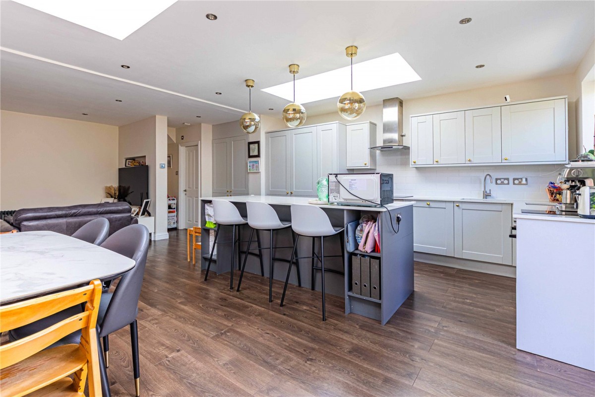 Located on a popular residential road in the sought-after south side of Borehamwood, this beautifully presented three-bedroom semi-detached home offers spacious, modern living that’s perfect for families. The property has been tastefully extended to the rear, creating a stunning open-plan kitchen, dining, and family space. With elegant roof lanterns and bi-fold doors, the area is filled with natural light and opens directly onto a flat, well-maintained west-facing garden — ideal for entertaining or unwinding in the afternoon sun. The ground floor also features a welcoming entrance hall, a practical utility cupboard, and a separate front-facing living room — perfect for cosy evenings or use as a home office/playroom. Upstairs, you'll find three generously sized bedrooms — two doubles and a spacious single — along with a modern family bathroom featuring both a bath and separate shower cabin. Externally, the property benefits from a block-paved driveway providing off-street parking for up to three cars, and a sunny, private rear garden completing the package. Located within easy reach of local shops, Yavneh Primary and Yavneh College, and Elstree & Borehamwood Station with direct trains into Central London. The A1 and M25 are also nearby, offering excellent connectivity for commuters. A fantastic opportunity to own a modern family home in one of Borehamwood’s most desirable locations — early viewing is highly recommended.