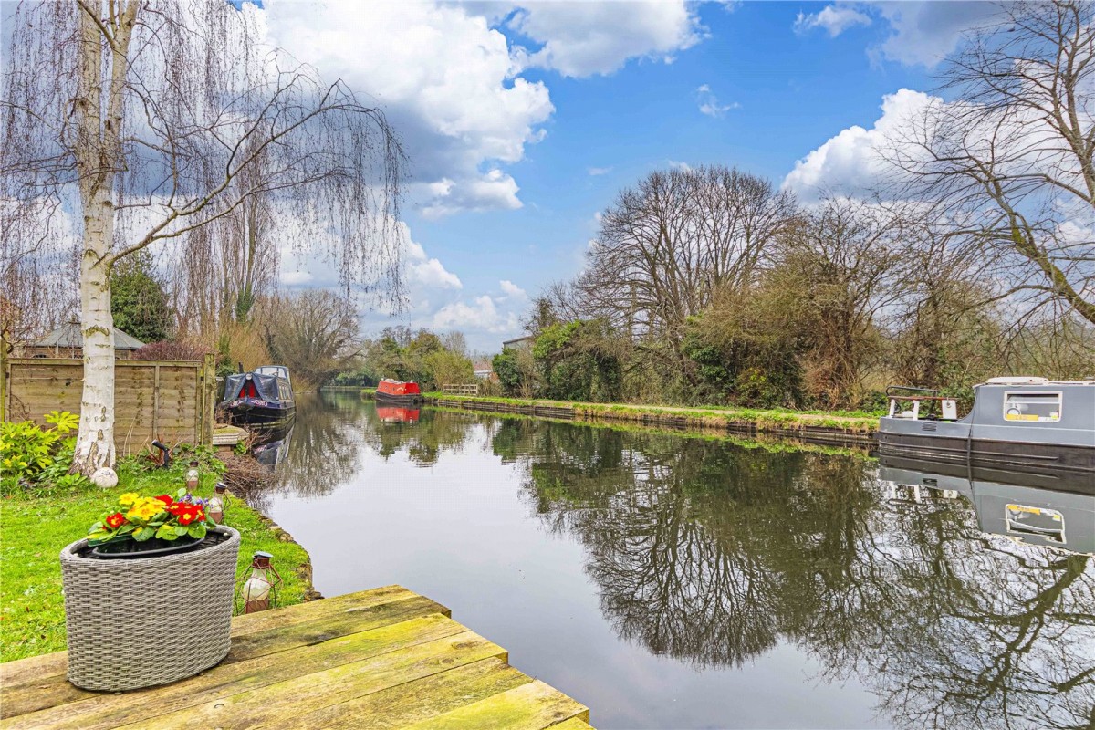 Castles are delighted to bring to the market this immaculate four-bedroom family home is perfectly positioned just moments from the heart of the village and offers an exceptional blend of generous living space, modern comfort and a highly sought-after canal side setting. Internally, the property opens with a spacious and welcoming entrance hall, giving access to the first floor and leading to the main living areas. The sitting room is a bright and inviting space, featuring a large front-aspect window that floods the room with natural light. This room flows seamlessly into the dining area, where double doors open directly onto the garden, providing tranquil views over the canal — perfect for relaxed family meals or entertaining. The stylish and generously sized kitchen forms the heart of the home, fitted with an excellent range of wall and base units and integrated appliances. There is ample room for a breakfast table, creating a sociable environment ideal for everyday family life. Another set of French doors lead out onto the garden, enhancing the connection between indoor and outdoor living. From the kitchen, a convenient door provides internal access to the integral garage, offering superb storage or potential for conversion (subject to planning). A downstairs WC completes the ground floor accommodation. Upstairs, the property offers four well-proportioned bedrooms, all thoughtfully laid out to provide flexibility for family living. The principal bedroom benefits from an excellent bank of built-in wardrobes, while all rooms are served by a luxury modern family shower room, stylishly finished and designed for convenience. The beautiful rear garden is a true highlight — attractively landscaped with mature trees, plants and herbaceous borders. A generous lawn leads directly to the canal, where the property enjoys private mooring rights, making this a rare and desirable feature. A spacious patio area provides the perfect setting for alfresco dining while taking in the peaceful waterside views. To the front, the property is set behind an attractive gravelled garden with established planting and a large driveway offering ample off-street parking.