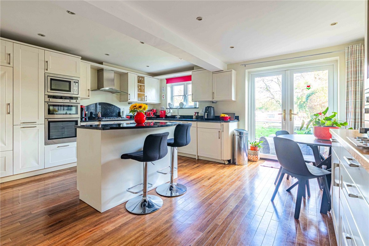 Castles are delighted to bring to the market this immaculate four-bedroom family home is perfectly positioned just moments from the heart of the village and offers an exceptional blend of generous living space, modern comfort and a highly sought-after canal side setting. Internally, the property opens with a spacious and welcoming entrance hall, giving access to the first floor and leading to the main living areas. The sitting room is a bright and inviting space, featuring a large front-aspect window that floods the room with natural light. This room flows seamlessly into the dining area, where double doors open directly onto the garden, providing tranquil views over the canal — perfect for relaxed family meals or entertaining. The stylish and generously sized kitchen forms the heart of the home, fitted with an excellent range of wall and base units and integrated appliances. There is ample room for a breakfast table, creating a sociable environment ideal for everyday family life. Another set of French doors lead out onto the garden, enhancing the connection between indoor and outdoor living. From the kitchen, a convenient door provides internal access to the integral garage, offering superb storage or potential for conversion (subject to planning). A downstairs WC completes the ground floor accommodation. Upstairs, the property offers four well-proportioned bedrooms, all thoughtfully laid out to provide flexibility for family living. The principal bedroom benefits from an excellent bank of built-in wardrobes, while all rooms are served by a luxury modern family shower room, stylishly finished and designed for convenience. The beautiful rear garden is a true highlight — attractively landscaped with mature trees, plants and herbaceous borders. A generous lawn leads directly to the canal, where the property enjoys private mooring rights, making this a rare and desirable feature. A spacious patio area provides the perfect setting for alfresco dining while taking in the peaceful waterside views. To the front, the property is set behind an attractive gravelled garden with established planting and a large driveway offering ample off-street parking.