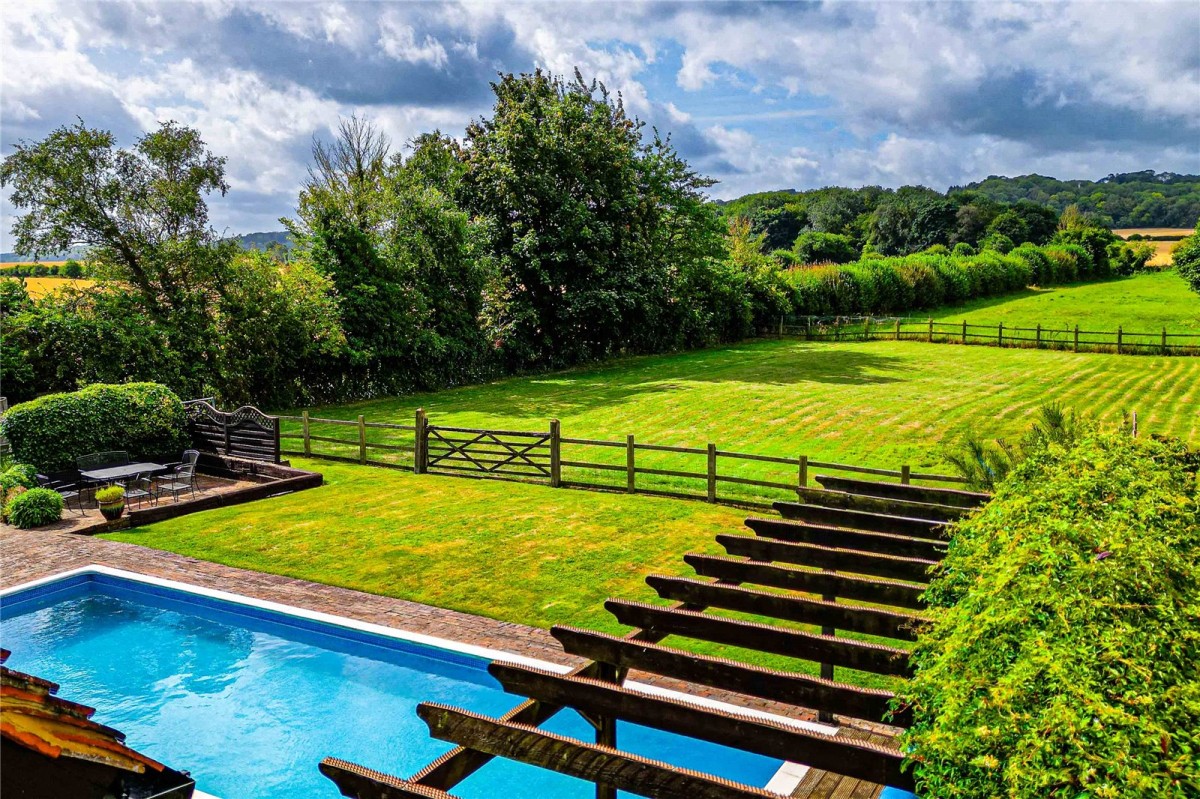 Swallow Cottage is a charming and characterful country residence sat on a generous plot to both the front and rear with fantastic views to both aspects. Dating back around 200 years, the property has been lovingly updated and extended creating stylish and functional family accommodation whilst maintaining many of its original features. The beautiful features and space are clear as soon as you enter the grand dining hall with the exposed brick fireplace complete with log burner and characterful wooden beams. As you turn right, you are greeted with the spacious, triple aspect lounge boasting reading nook with built in window seat, another log burning stove and patio doors leading to the pool area. To the other side of the dining hall via a drop latch door, you enter the more modern and yet contemporary kitchen family diner. Fully fitted with a central island, ample space for a full dining table and soft seating area sat within the rear Bay window. The property also benefits from patio doors offering views across the garden and swimming pool. The kitchen itself with oak flooring throughout, also offers a 6 ring Range oven, built in wine rack, a dishwasher, and two sunken sinks. Beyond the kitchen is the office with views to the rear. Another useful addition is a utility/boot room located off the kitchen with its own entrance to the front of the property which provides the perfect access for muddy dogs. Completing this floor is a conveniently located WC. Finally, a dry, vaulted cellar providing good head height is the perfect storage for the wine collection! Upstairs, the impressive accommodation continues with generous double bedrooms, one en suite, and a family bathroom. The principal suite itself is a fantastic double bedroom with an abundance of space and dual aspect windows showcasing great views to countryside front and rear. The room also includes built in wardrobes along with access to a three piece bathroom with double walk in shower and dressing area. Outside the property doesn't fail to impress. You are struck by how far set back the house is from the road giving complete privacy and natural screening. The coachman driveway offers extensive parking for multiple vehicles and the front gardens have been maintained to the highest standard. From the driveway you are greeted with a double garage with basement and ample storage above that could potentially be converted into an annex or additional accommodation (subject to all necessary planning consents). The property boasts a quiet space surrounding the pond with decked area. To the rear of the property, the South facing garden spills onto a paddock and then fields beyond with views of the Ashridge estate. The space has been broken into different sections allowing a homeowner to decide how best to utilise the expansive area. The first part of the garden has the fully heated swimming pool and private sunken patio area, ideal for hosting family and friends. To the left hand side, what once was the stabling is now fantastic storage space with power supply. There is more than enough space to store all you might need to maintain this beautiful garden, or for potential alternative use. The paddock beyond is an open space perfect for play, sports or animals. Swallow Cottage is not just a home it is a piece of history in a fabulous setting within the Buckinghamshire grammar school catchment with easy access into neighbouring towns and train stations including Berkhamsted and Tring.
