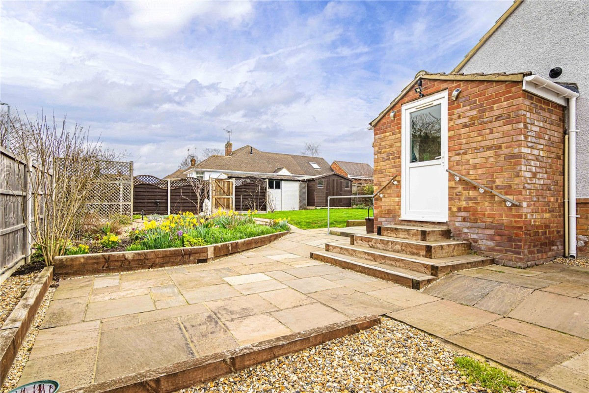 Set on a substantial plot, the property is framed by superb wrap-around gardens that create a wonderful sense of privacy and space. The frontage is attractively shingled for low maintenance, complemented by colourful flower borders and secure fencing. To the side and rear, the gardens truly shine, with a generous sunny patio perfect for entertaining, a well-kept lawn. A gate at the rear opens directly to a private driveway with parking for multiple vehicles, plus a DETACHED single garage.
