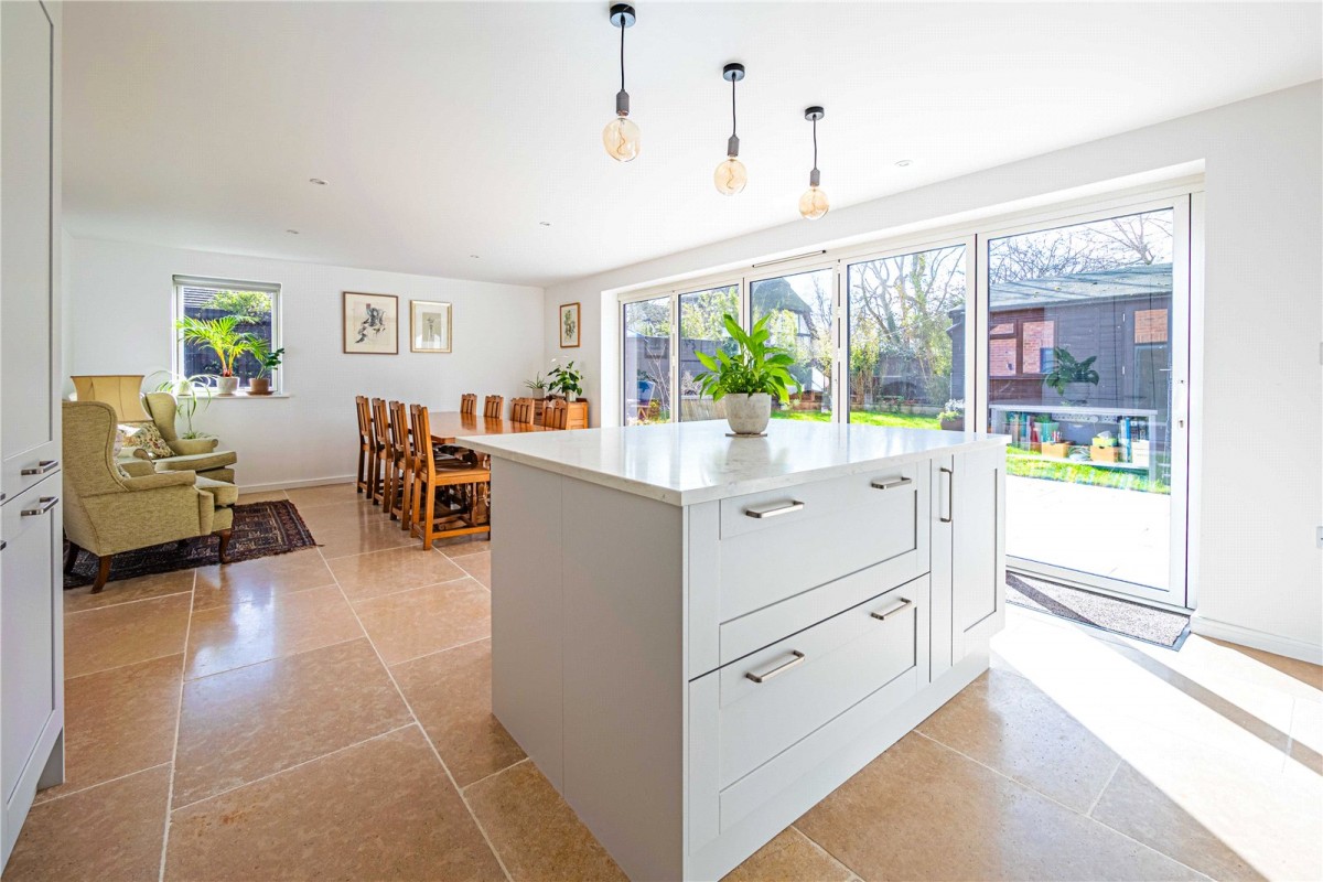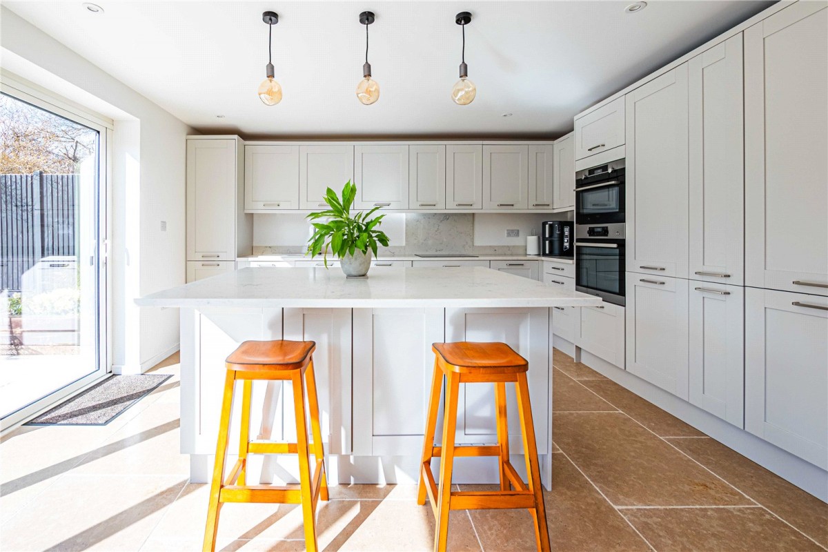 To the rear of the property lies the true heart of the home, a stunning open-plan kitchen/diner/family room designed for modern living and effortless entertaining. This expansive space features sleek integrated appliances, a gas boiler, luxurious underfloor heating, and a stylish central island with breakfast bar, perfect for casual dining, morning coffee, or hosting friends. The BI-FOLD doors open seamlessly onto the garden, creating a wonderful indoor-outdoor flow and filling the room with light.