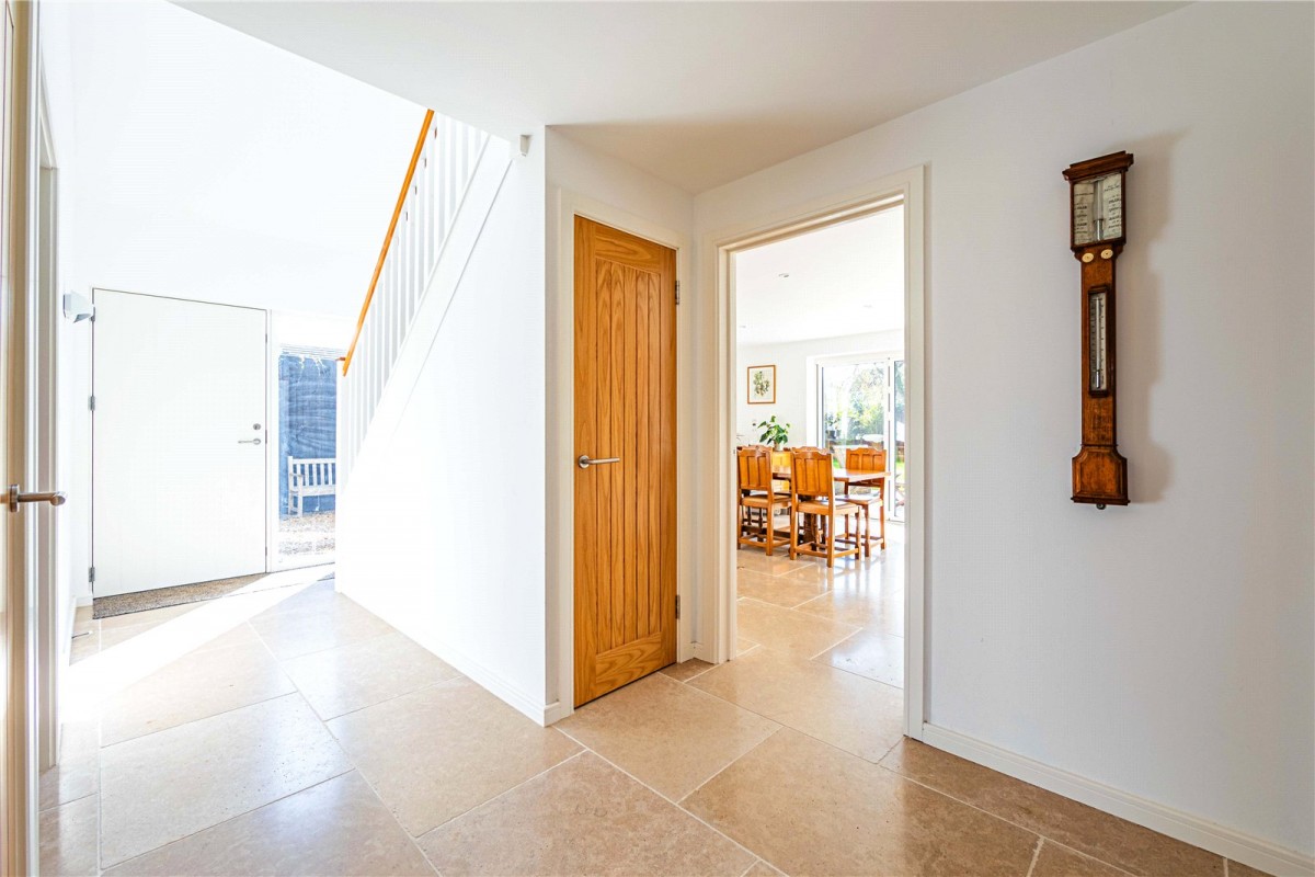 The rear garden has been cleverly and carefully designed to offer both practicality and enjoyment. Benefitting from an attenuation tank, the outdoor space provides peace of mind while maintaining a generous lawned area perfect for children or entertaining. A wide patio creates an excellent setting for al fresco dining, while planted borders add colour and character throughout the seasons. There is also a substantial workshop/games room which is fully insulated and double glazed, an incredibly versatile space that could serve as a hobby room, home gym, studio, or entertainment hub. A gate provides access to the front, and the garden’s desirable southerly aspect ensures it enjoys sunshine throughout the day. This striking architect-designed home is just over three years old and offers thoughtfully planned, contemporary living. The property benefits from excellent insulation and double glazing throughout, ensuring year-round comfort and efficiency, along with extensive eaves storage providing superb additional space.