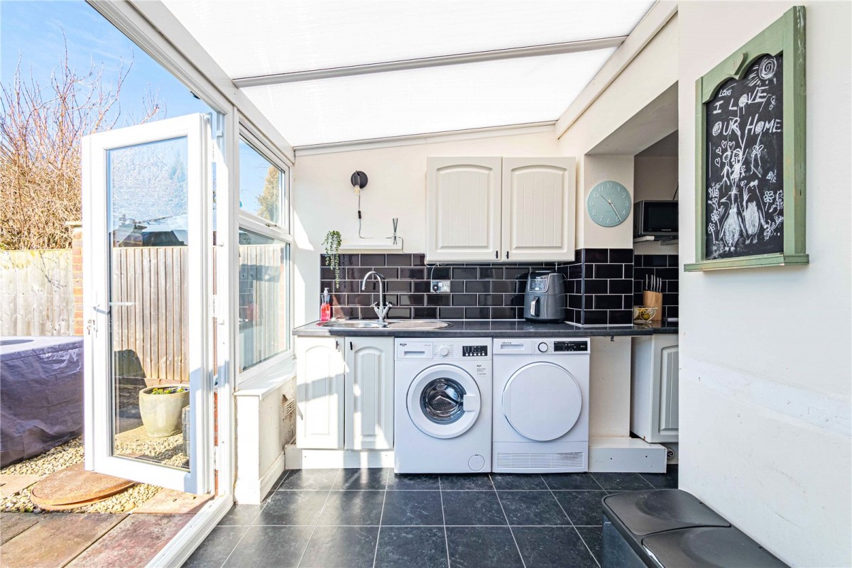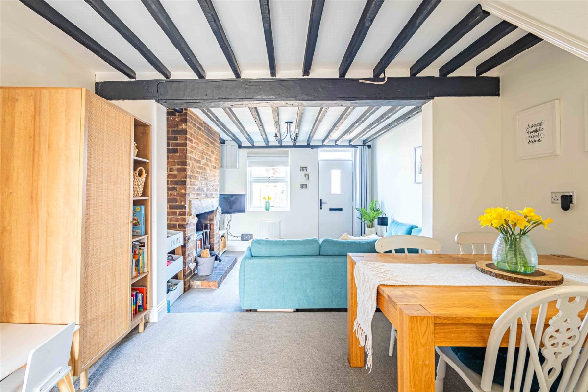 Swan Cottage is in the heart of Northall. This well presented extended two bedroom cottage offers fantastic open plan living downstairs having previously been two separate rooms. The property has exposed beams adding a sense of character. The lounge with a brick fireplace and log burner, now seamlessly flows to the dining area. The well-proportioned kitchen, with a utility space offers views over the rear garden and French doors provide access to the garden beyond. Completing this floor is the family bathroom with bath and shower. Upstairs there are two well-proportioned bedrooms again with character features. The rear garden is a true selling point with patio area and generous lawn with convenient access to the garage store. The front of the property has parking for one vehicle. Swan Cottage is situated within the Buckinghamshire school catchment area and within walking distance to the Swan Pub.