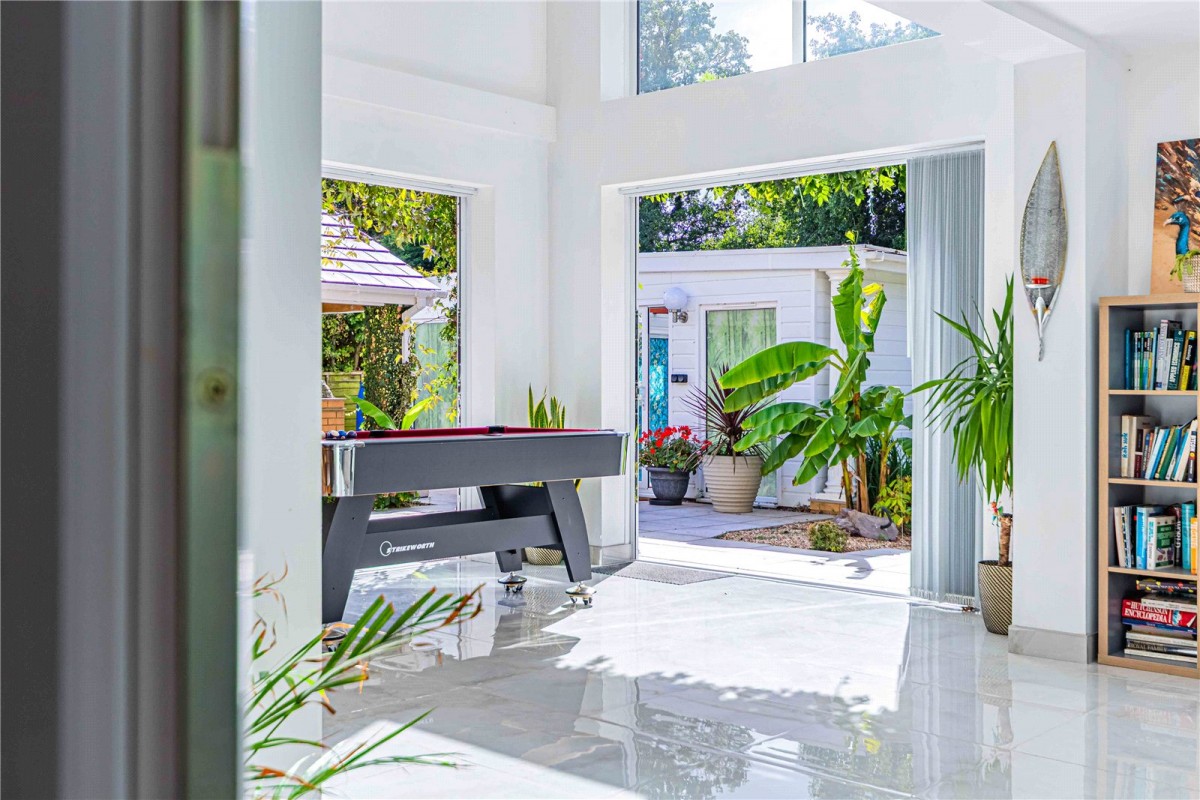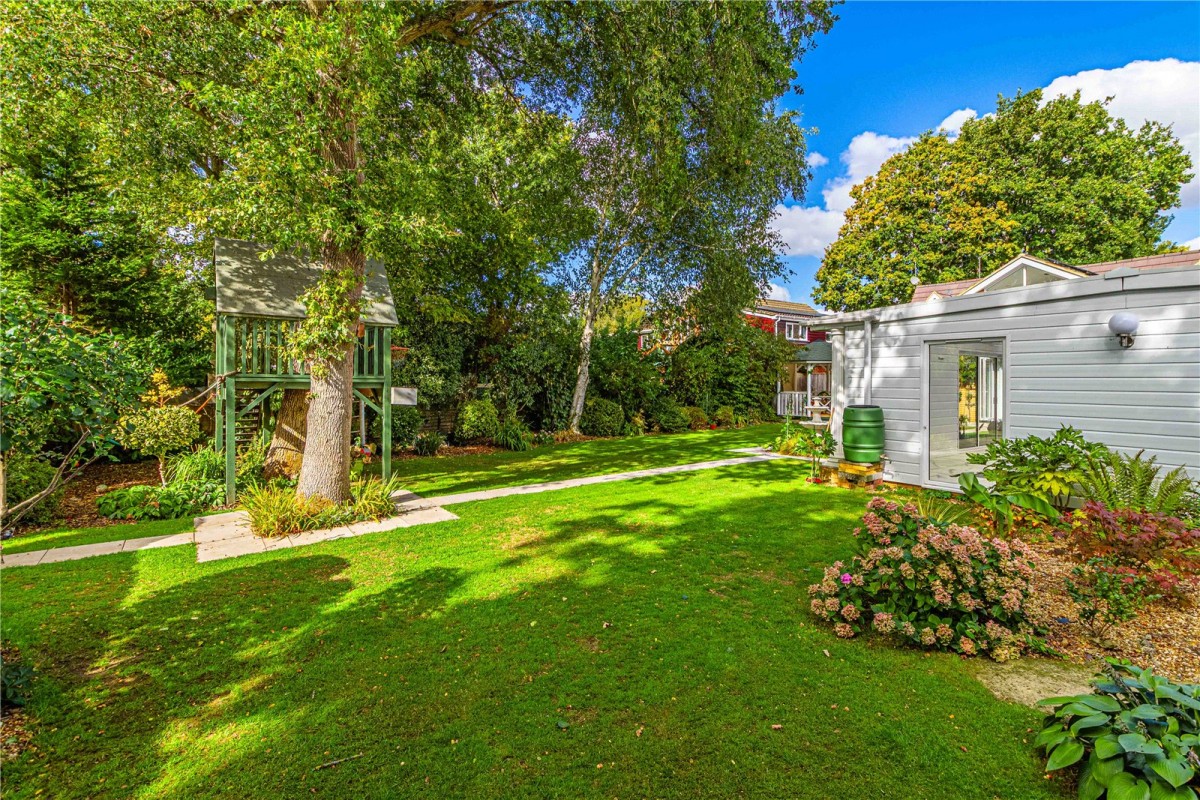 The SOUTHERLY facing rear garden is a real showstopper. Designed with both fun and relaxation in mind, it offers beautifully landscaped spaces for 'Al-fresco' dining, lounging, and play. Picture summer evenings around the brick-built barbeque, shaded afternoons beneath the timber gazebo, or children’s adventures in the bespoke treehouse and play area. For year-round enjoyment, the pool house is a rare luxury, featuring a heated indoor swimming pool powered by an efficient Calorex heat pump, perfect for daily exercise, family fun, or entertaining friends whatever the weather. The pool room has been professionally constructed with double glazed windows & sliding door with wall insulation, for alternative arrangements it can be adapted to a spacious entertainment area with perhaps another lounge, a bar with room for a pool table/dart board, or a large office suite. The property further benefits from 22 SOLAR PANELS with batteries for storage and which feed back to the electric grid.