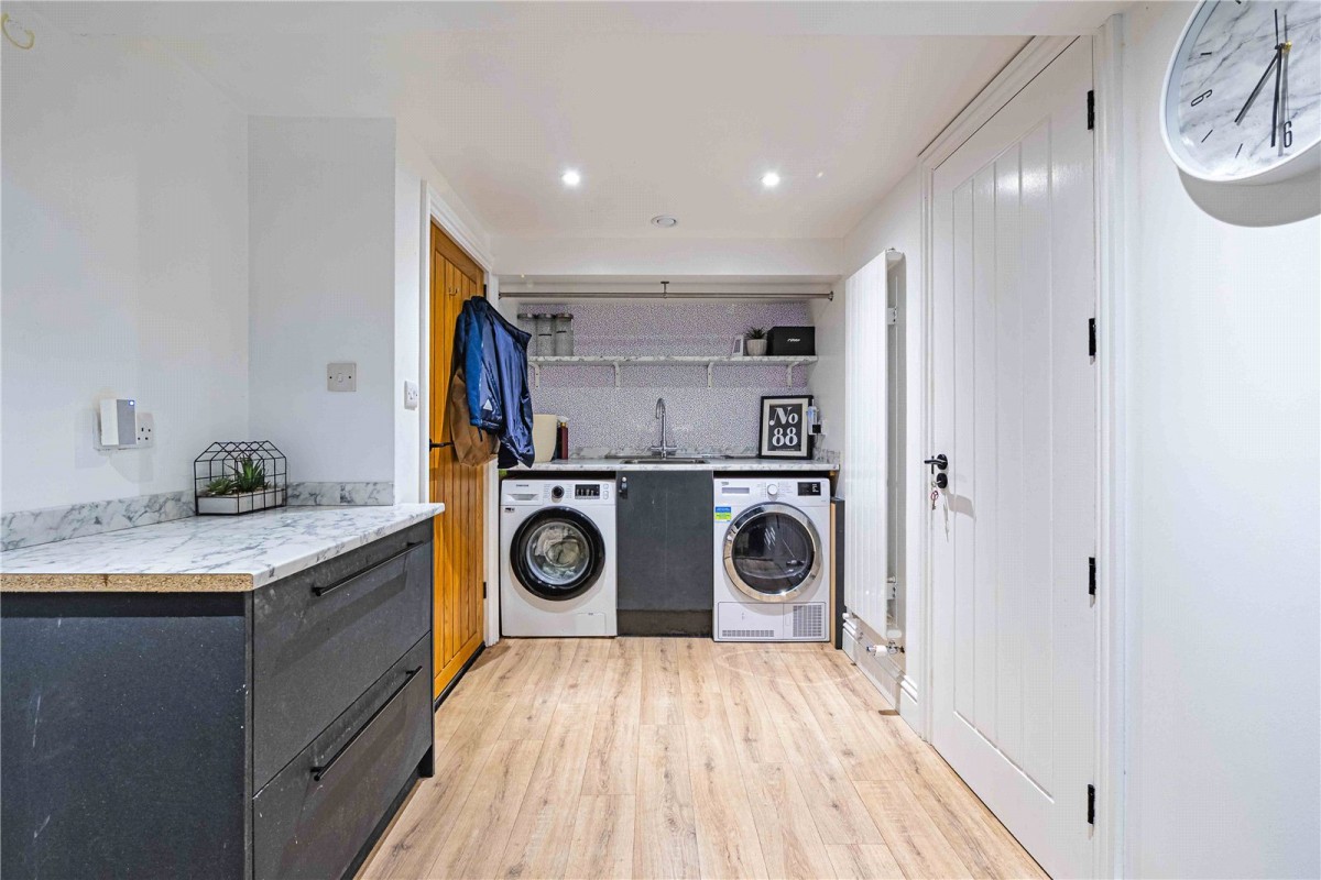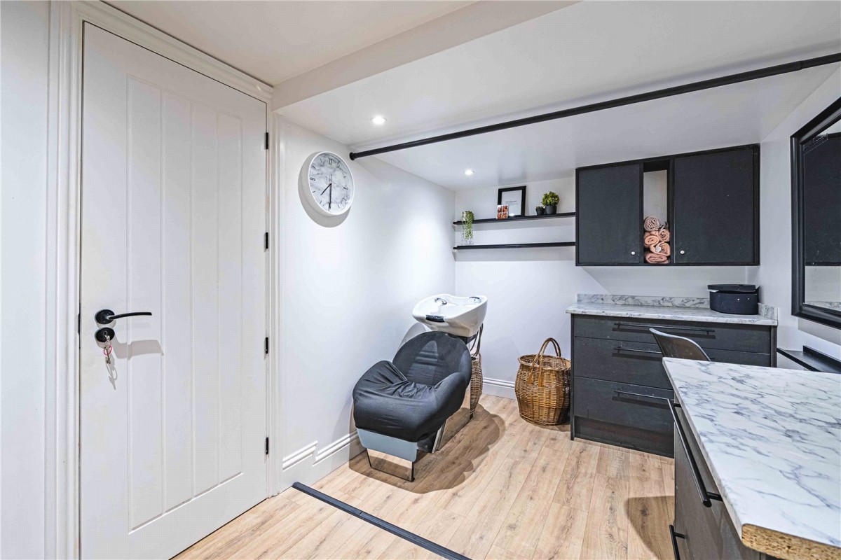 Stepping into the mezzanine level entrance hall, you immediately appreciate the unique split level design that makes this home truly special. This welcoming space provides direct access to a UTILITY/DRYING ROOM and courtesy door into the garage, as well as a highly useful study or fifth bedroom, perfect for home working, guests, or multi-generational living. From here, stairs flow both upward and downward, guiding you through the home’s wonderfully flexible layout.