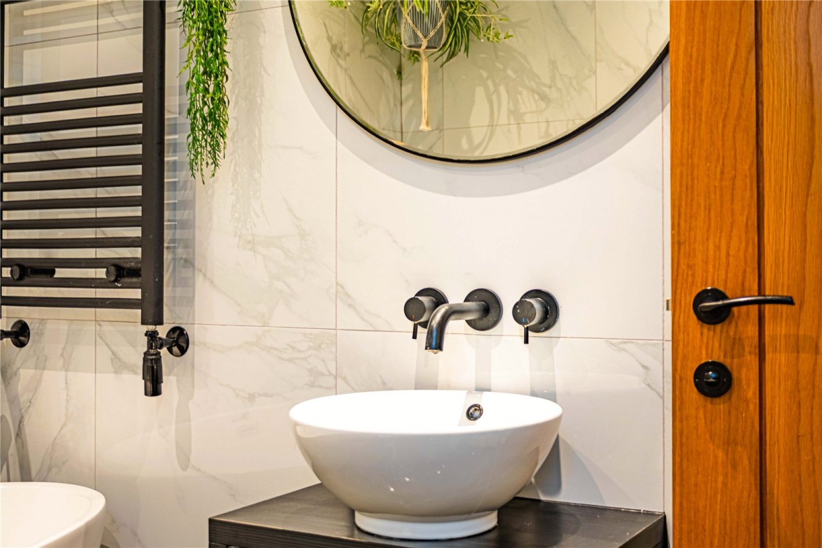 The lower ground floor forms the social heart of the property where a high specification open plan kitchen and lounge area creates a vibrant hub for family life. Stylish sliding doors open wide onto a broad patio, seamlessly blending indoor and outdoor living, flooding the space with natural light. There is a BIO-FUEL fireplace, wooden floor fitted throughout, central island with granite worktop, range of units & drawers with ample granite worksurface space, NEFF ovens, unit lighting, fitted hot tap, an INTEGRATED dishwasher and tastefully finished WC with a tiled floor.
